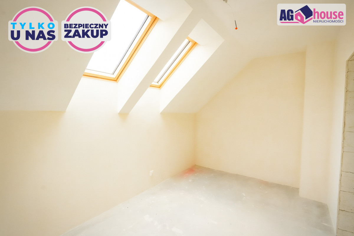 - Powierzchnia użytkowa ok. 90 m² z funkcjonalnym poddaszem użytkowym