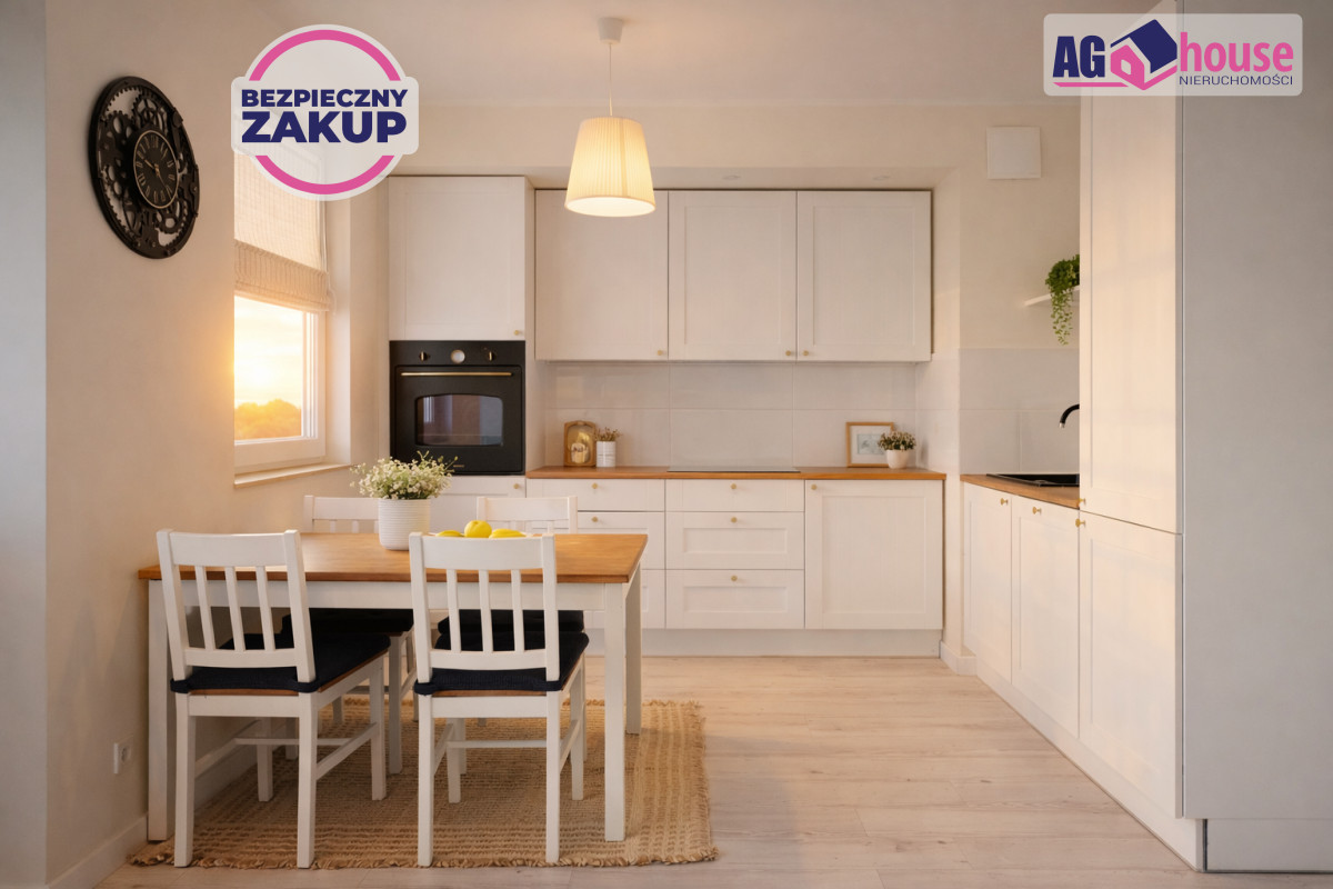 Mieszkanie wyróżnia się jasnym, dobrze doświetlonym wnętrzem oraz południową ekspozycją balkonu, dzięki której lokal jest słoneczny w godzinach popołudniowych. Dodatkowym atutem jest dostęp do prywatnego lasu, który pozwala cieszyć się spacerami i rekreacją niemal tuż za progiem domu.