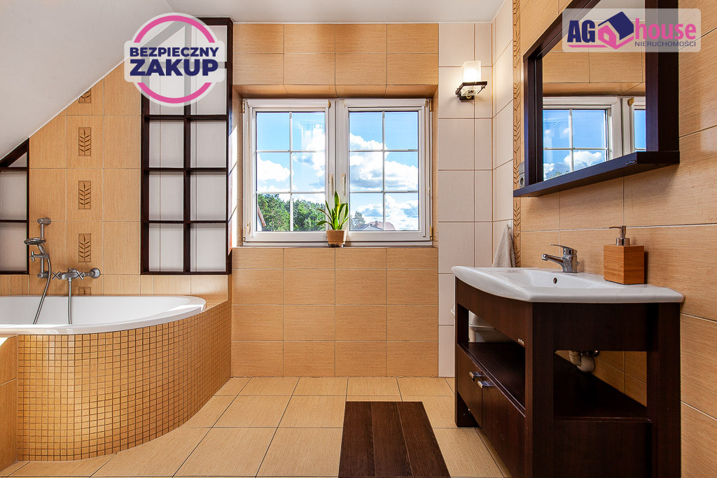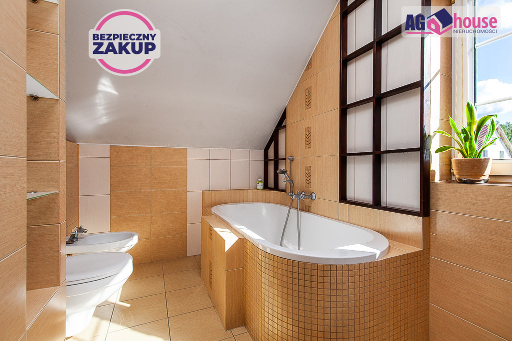 Dom:Dom o powierzchni użytkowej 201 m² wybudowany w 2008 roku, na działce 1258 m². Wykończony w bardzo dobrym standardzie, w pełni umeblowany i wyposażony w nowoczesne AGD. Ogrzewanie na eko groszek, opłaty kształtują się ok. 600 zł przez cały rok, bardzo tanie koszty utrzymania