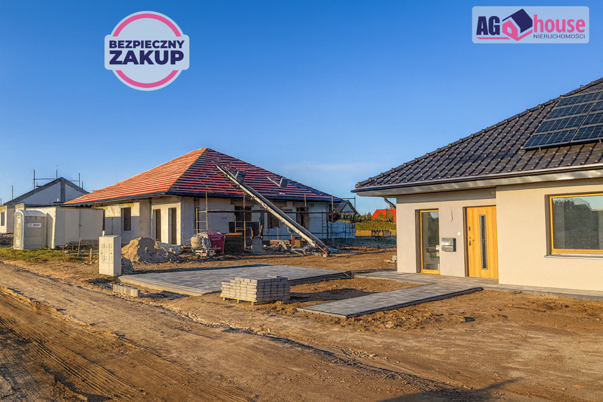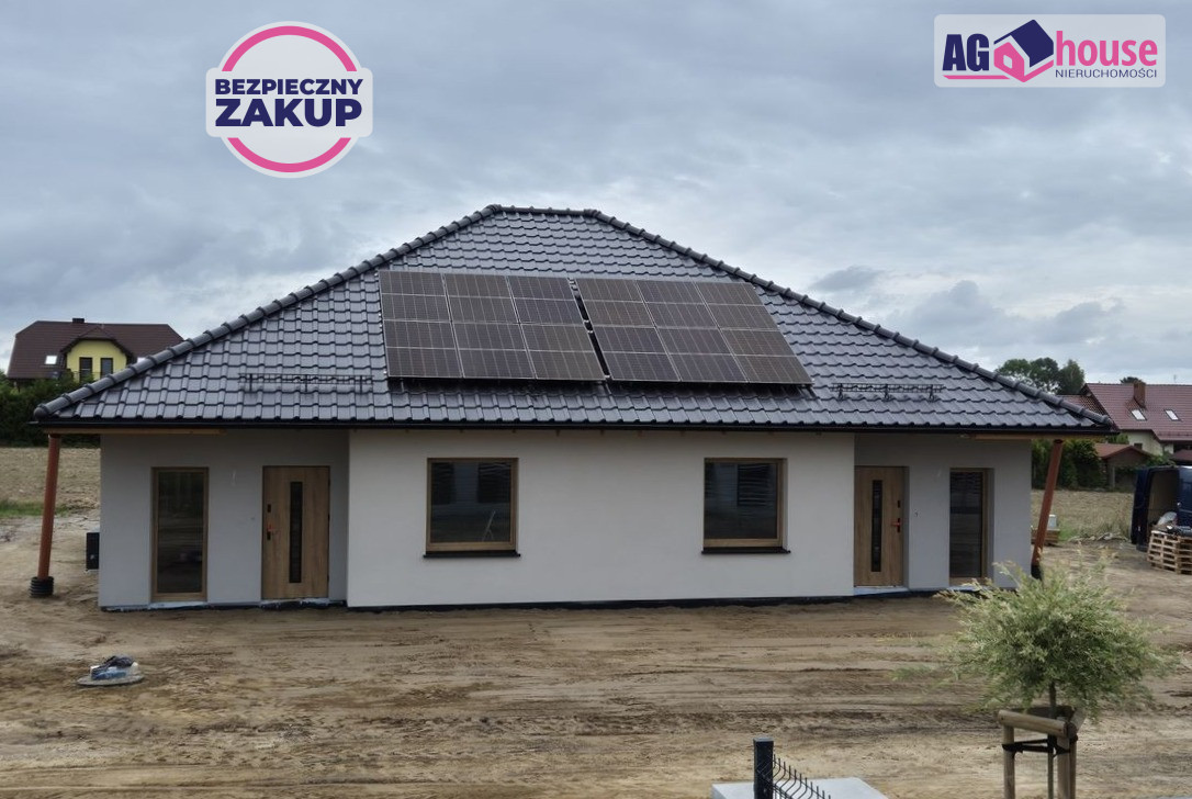 Na sprzedaż trafia nowoczesny, energooszczędny dom parterowy, stanowiący jedną z części budynku dwulokalowego. Projekt charakteryzuje się eleganckim dachem kopertowym pokrytym dachówką ceramiczną, co nadaje mu unikalnego charakteru. Wnętrze zostało zaprojektowane z myślą o maksymalnej funkcjonalności i komforcie.Okna trzyszybowe. Cały dom posiada ogrzewanie podłogowe, a wentylacja mechaniczna z odzyskiem ciepła (rekuperacja) zapewnia świeże powietrze bez strat energii. To idealna propozycja dla osób ceniących sobie komfort, niskie rachunki i dbałość o środowisko.