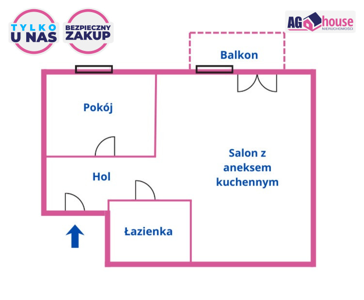 Niniejsze ogłoszenie i zawarte w nim informacje, treści oraz podane w powyższej treści ceny powyższa oferta ma charakter informacyjny i nie stanowią oferty handlowej w rozumieniu art. 66 kodeksu cywilnego. Zawarte w ogłoszeniu informacje na temat nieruchomości dotyczące ofert sprzedaży lub najmu nieruchomości mogą uleć modyfikacji lub zmianom w zależności od informacji przekazywanych od osób posiadających prawo do nieruchomości. Biuro AGhouse Nieruchomości dba, aby oferty były aktualizowane na bieżąco. Nasi doradcy dokładają wszelkich starań, aby oferta nieruchomości zamieszczona przez nasze biuro odpowiadała stanowi faktycznemu nieruchomości.