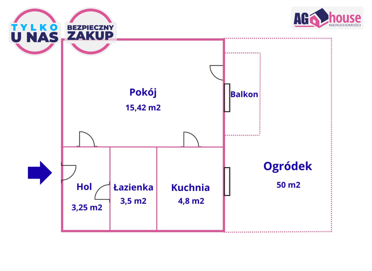 Niniejsze ogłoszenie i zawarte w nim informacje, treści oraz podane w powyższej treści ceny powyższa oferta ma charakter informacyjny i nie stanowią oferty handlowej w rozumieniu art. 66 kodeksu cywilnego. Zawarte w ogłoszeniu informacje na temat nieruchomości dotyczące ofert sprzedaży lub najmu nieruchomości mogą uleć modyfikacji lub zmianom w zależności od informacji przekazywanych od osób posiadających prawo do nieruchomości. Biuro AGhouse Nieruchomości dba, aby oferty były aktualizowane na bieżąco. Nasi doradcy dokładają wszelkich starań, aby oferta nieruchomości zamieszczona przez nasze biuro odpowiadała stanowi faktycznemu nieruchomości.