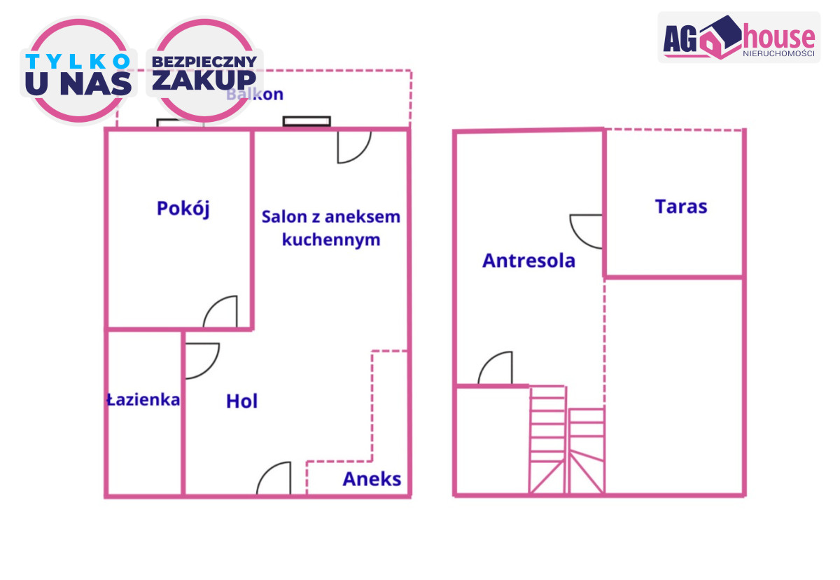 Niniejsze ogłoszenie i zawarte w nim informacje, treści oraz podane w powyższej treści ceny powyższa oferta ma charakter informacyjny i nie stanowią oferty handlowej w rozumieniu art. 66 kodeksu cywilnego. Zawarte w ogłoszeniu informacje na temat nieruchomości dotyczące ofert sprzedaży lub najmu nieruchomości mogą uleć modyfikacji lub zmianom w zależności od informacji przekazywanych od osób posiadających prawo do nieruchomości. Biuro AGhouse Nieruchomości dba, aby oferty były aktualizowane na bieżąco. Nasi doradcy dokładają wszelkich starań, aby oferta nieruchomości zamieszczona przez nasze biuro odpowiadała stanowi faktycznemu nieruchomości.