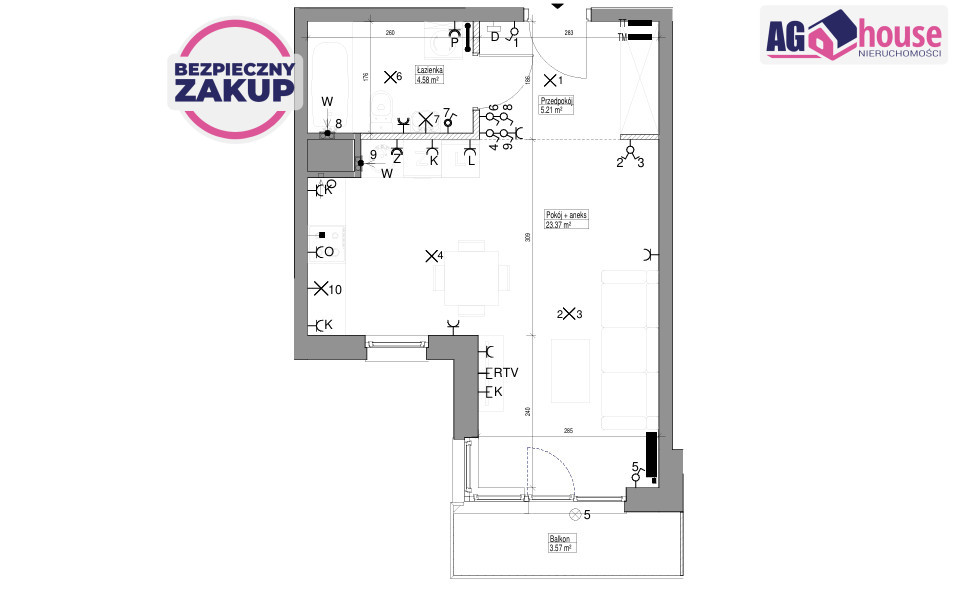 Niniejsze ogłoszenie i zawarte w nim informacje, treści oraz podane w powyższej treści ceny powyższa oferta ma charakter informacyjny i nie stanowią oferty handlowej w rozumieniu art. 66 kodeksu cywilnego. Zawarte w ogłoszeniu informacje na temat nieruchomości dotyczące ofert sprzedaży lub najmu nieruchomości mogą uleć modyfikacji lub zmianom w zależności od informacji przekazywanych od osób posiadających prawo do nieruchomości. Biuro AGhouse Nieruchomości dba, aby oferty były aktualizowane na bieżąco. Nasi doradcy dokładają wszelkich starań, aby oferta nieruchomości zamieszczona przez nasze biuro odpowiadała stanowi faktycznemu nieruchomości.
